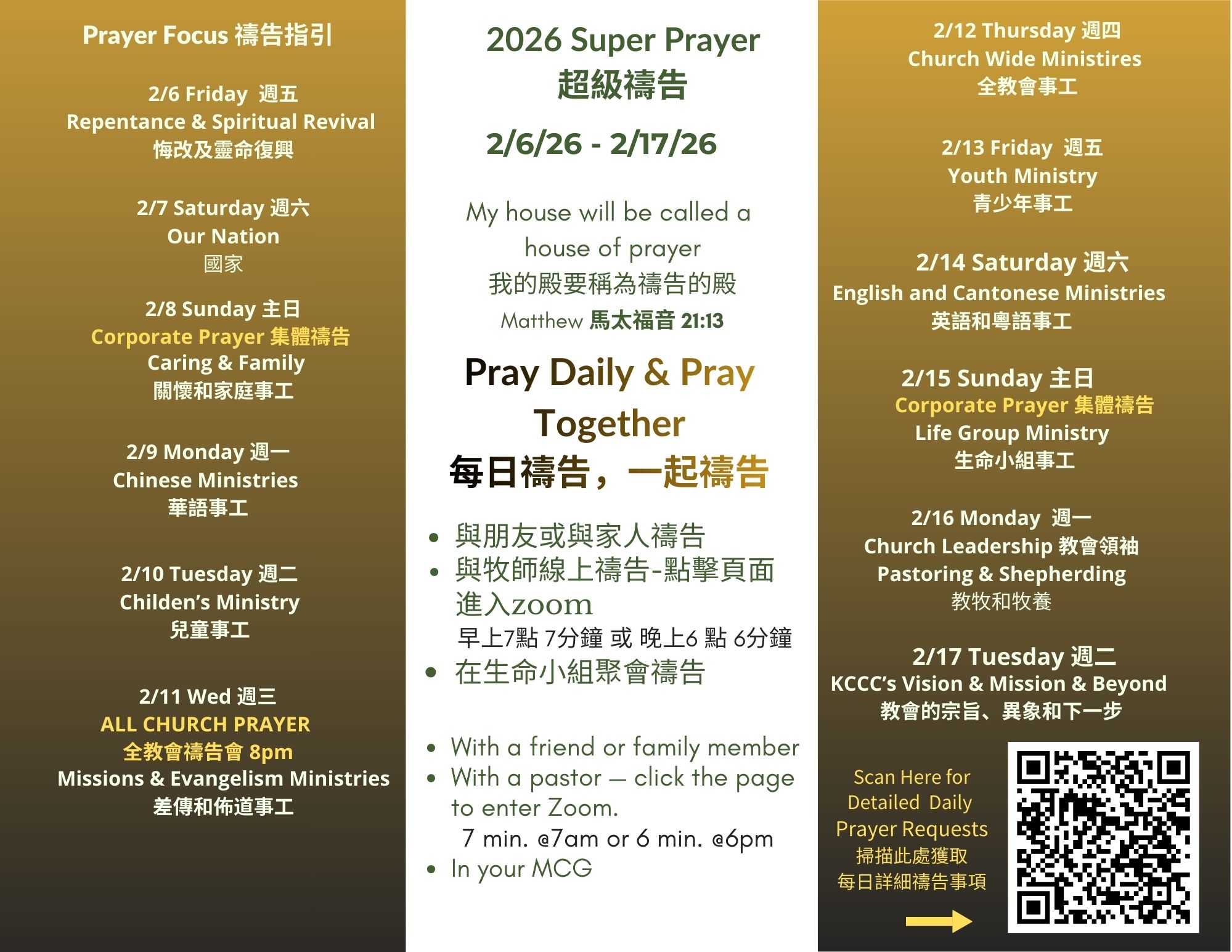 2/15 華語和粵語雙語主日崇拜,上午9:15-10:30