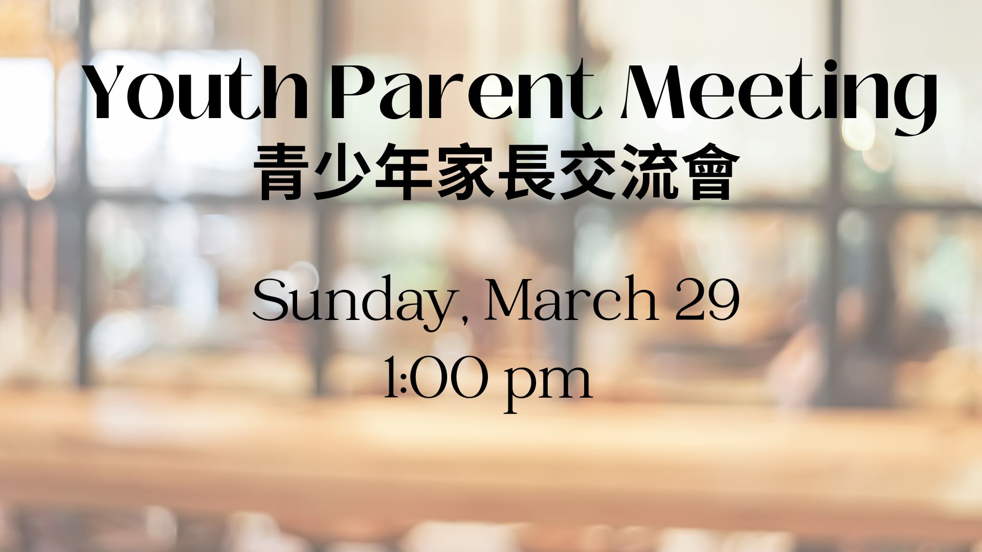 華語主日崇拜,上午9:15-10:30